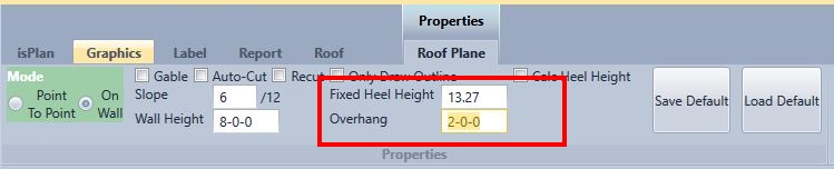 Walls in isPlanĀ® that have been specified with an overhang dimension in them will also reflect an overhang in the roof plane.