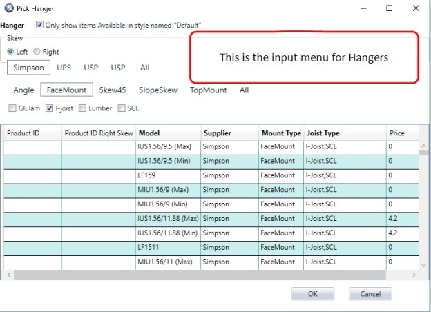 These additional hanger products are part of the current Materials List that the user uses for design and engineering of a framing plan/layout.
