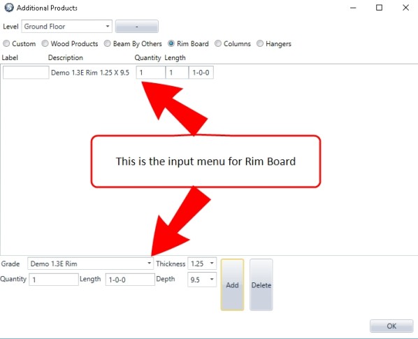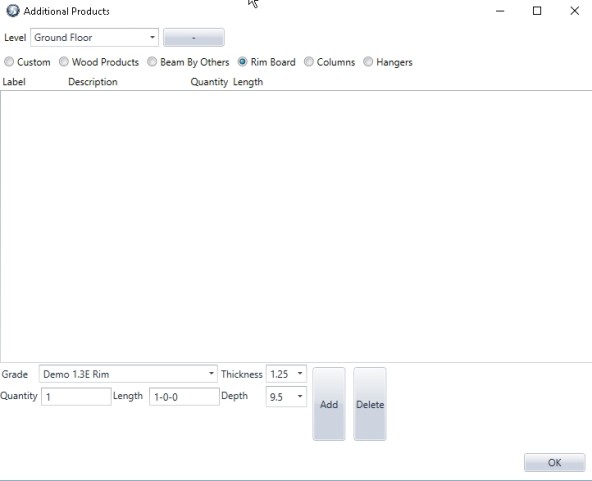 These additional Rim Board products are part of the current Materials List that the user uses for design and engineering of a framing plan/layout.