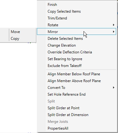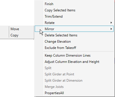 Copy- Allows the user to copy an item, group of items or a structure to a user defined mirror line.