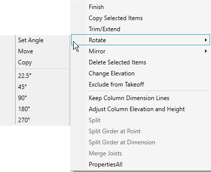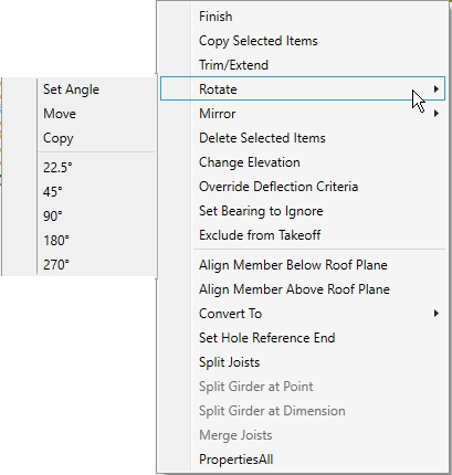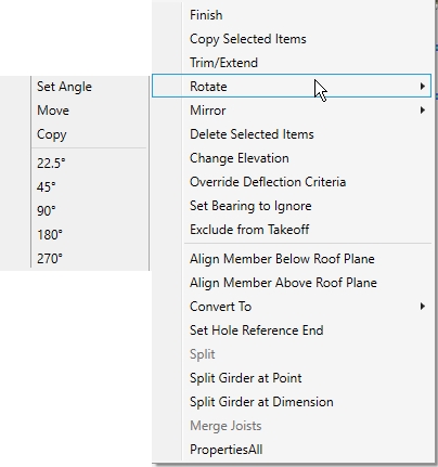 Rotate- A selected beam can be rotated by a set angle, or a predefined angle as seen on the left.