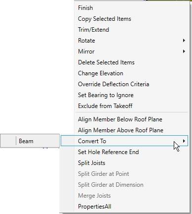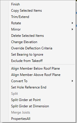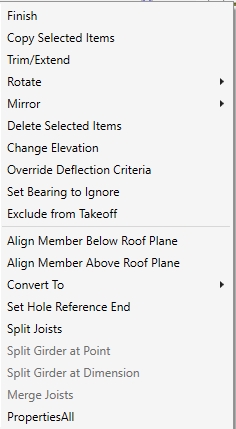 Change Elevation- This is used to check or change elevations (height of members) of any or all items within the framing plan.