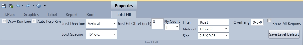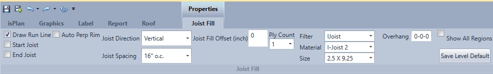 Used to fill in joists on a framing layout and inputs the joist in an array fashion. Two methods are used for inputting: draw run line and exterior boundary/boundary.