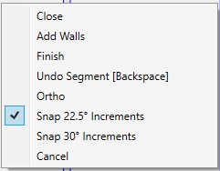 When users select a wall for editing and right click this menu (pictured below) appears. These items are available for use in editing the wall segment or segments.