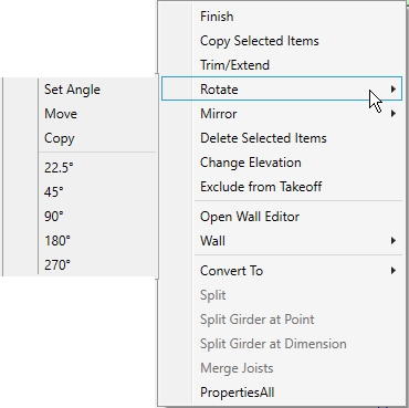 Rotate- A selected wall can be rotated by a set angle, or a predefined angle as seen on the left.